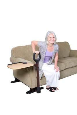 Description Able Life Able Tray - Multi-use tray that pivots out of the way when not in use Able Life Able Tray is an ergonomically designed safety handle that provides balance and support for sitting or standing positions. It is available with a convenient multi-use swivel tray that is easy-to-assemble. Color & Material: Brown Wood & Steel Type: Able Tray Features: Ergonomic Safety Handle Provides Balance And Support For Sitting Or Standing Motion Specifications Warranty : Lifetime Table Shape : Round Weight (lbs.) : 23.8 Furnishing Color : Brown Surface Material : Wood True Color : Brown Height in Inches : 32 Length in Inches : 16 Depth in Inches : 18 Table Base Finish : Brown Table Base Material : Steel Height Adjustable : Height Adjustable Desk Top Construction : Engineered Wood Brand : Able Life Customizable : No Weight : 25.00 lbs. per Each