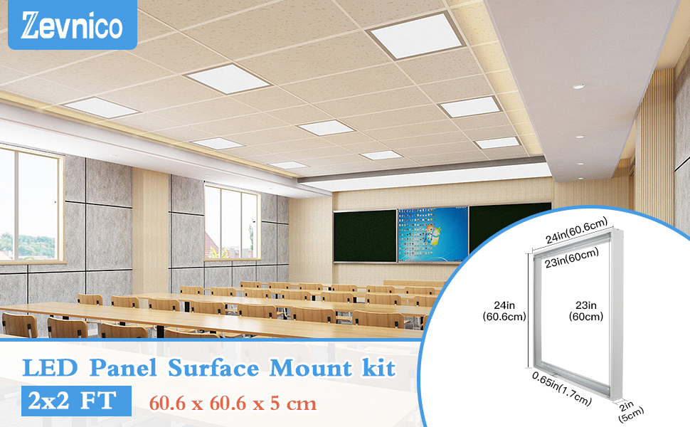 The Zevnico 2x2FT Surface Mount Kit is a premium aluminum mounting solution designed for 24"x24" LED flat panel lights. This 4-pack kit enables easy, damage-free surface installation on drywall, concrete, or wood ceilings with a sleek 2" profile. Featuring a durable white anti-rust finish and simple 4-step assembly, it’s perfect for modern offices and homes seeking a clean, professional lighting upgrade.