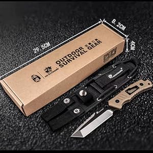 Fixed Blade Knife with Sheath,Survival Knife Multi-tool with Bottle Opener and Glass Breaker, for Outdoors, Camping, Hunting,Fishing(Khaki)