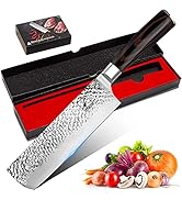 The imarku Butcher Knife, a 7" Serbian Chef Knife, is an absolute game-changer for any cooking enthusiast or professional chef. Straight out of the box, the blade’s sharpness is breathtaking. Slicing through meat, vegetables, or even tough cuts feels almost effortless—like cutting through butter! What really sets this knife apart, beyond its functionality, is its striking design. The high-carbon steel blade has a rustic, forged look that exudes craftsmanship and authenticity. The full tang construction gives it a sturdy, well-balanced feel in your hand, making every cut precise and satisfying. When placed in its stand, the knife transforms from a cooking tool to a piece of art. It adds a bold, sophisticated vibe to your kitchen, instantly catching the eye of anyone who enters. The stand keeps it easily accessible while keeping the blade protected, making it practical and stylish. Overall, the imarku Butcher Knife is more than just a knife—it's a statement piece that delivers top-notch performance. Highly recommended for anyone looking to up their cooking game and add a touch of elegance to their kitchen!