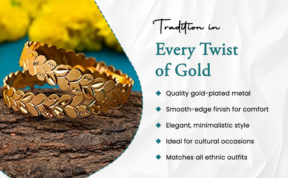 Handicraft KottageWomen's Gold Plated Traditional Designer Plain Bangles Kada For Women