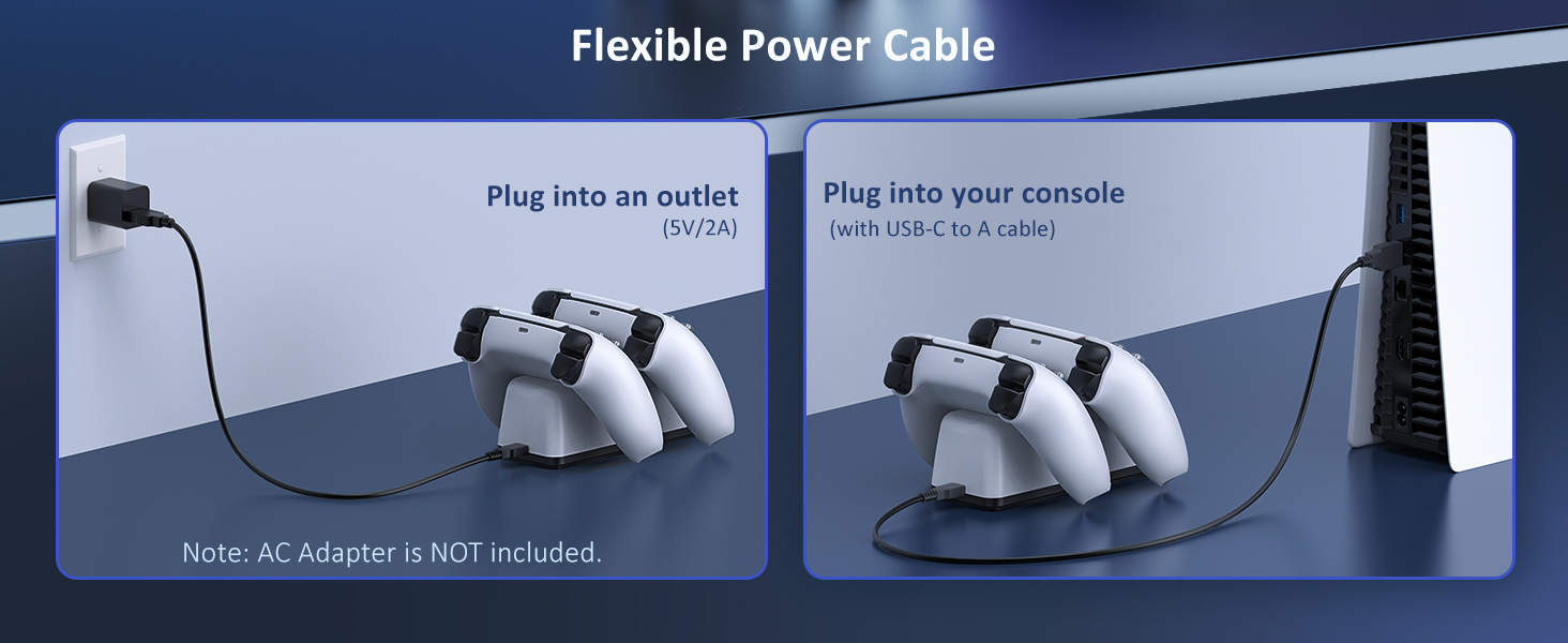 The NexiGoDOBE PS5 Controller Charger is a dual charging station designed for PlayStation 5 DualSense controllers, allowing you to charge two controllers simultaneously in just 3 hours. It features LED indicators for charging status, a plug-and-play design for easy use, and built-in safety protections to ensure your controllers are charged safely. Its compact design also serves as a stand for your controllers when not in use.