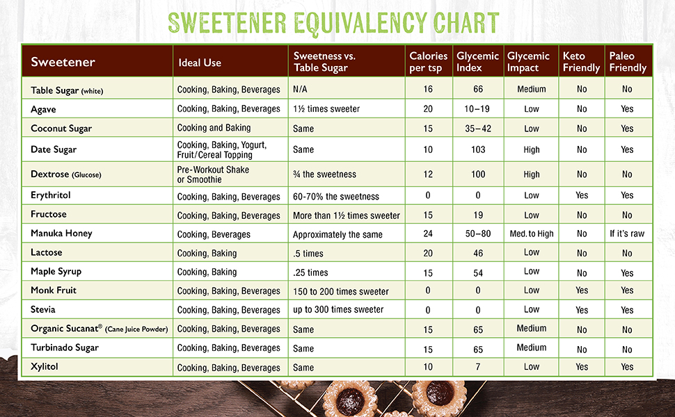 - CALORIE CONSCIOUS CHOICE - Contains roughly one-third the calories of traditional sugars—sweetness without the weight.