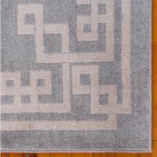 The Unique Loom Athens Collection Area Rug (6x9 ft) features a machine-made polypropylene pile with a durable cotton backing. Its modern geometric navy blue and beige design offers stain resistance and easy maintenance, making it a stylish, practical choice for any indoor room.