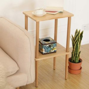 The EXILOT Solid Wood Nightstand is a compact, durable bedside or side table crafted from 100% natural oak and beech wood with a clear varnish finish. Featuring two open shelves for easy access and a load capacity of up to 120 lbs, it combines minimalist style with practical storage. Tool-free assembly makes it ideal for busy professionals and renters seeking a stylish, space-saving furniture solution.