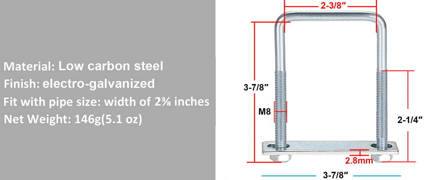 YIDU69Q 10 Pack Square U-bolts, Carbon Steel U Clamps, Length 4 inches, Fit Pipe 2⅜ inches(60mm)