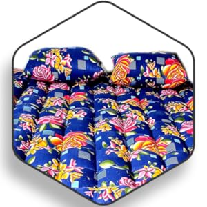 The Flamo Queen Size Mattress (75x60x6 inches) combines natural kapok, silk cotton, and ilavam panju fillers with a vibrant multicolor cotton cover. Weighing 18 kg and delivered fully assembled, it includes 2 matching pillows, offering a soft, breathable, and eco-friendly sleep solution crafted in India.
