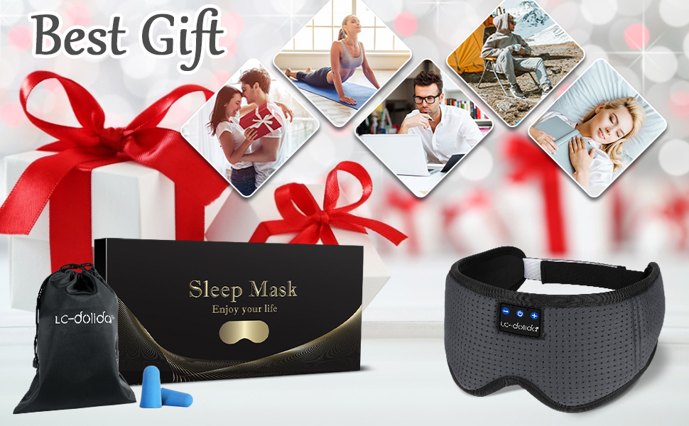 The LC-dolida Sleep Headphones combine ultra-thin Bluetooth 5.2 stereo speakers with a blackout sleep mask, delivering up to 10 hours of high-quality audio and complete light blockage. Designed for side sleepers, its memory foam and breathable materials ensure maximum comfort without pressure on the eyes. Ideal for travel, meditation, and improving sleep quality, this wireless sleep mask also features a built-in microphone for hands-free calls.