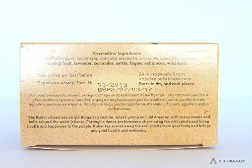 Organic Herbal Tea Mix Kuker Tea Do you want to boost your immune system and improve your overall health tremendously without using any artificial pills, foods, drugs? Kuker Tea is the best thing for you! Why is it the best thing for your body? Because our tea is a unique herbal tea contains only herbs from the Balkans, clean, organically grown and collected, with NO ADDED ARTIFICIAL SUBSTANCES! No other like it on the worldwide market, it was designed by qualified professionals and the recipe has been patented!It contains: Rosehip - Vitamin C, carotene, pectin, Vitamin B1 & B2, K Echinacea - ant inflammatory immune stimulating agent Nettle - astringent, expectorant, tonic, anti-inflammatory and diuretic. Wild Basil - helps reduce internal inflammation Lavender - invaluable help for insomnia and fatigue Thyme- an antioxidant, antimicrobial agent, contains beta carotene, flavonoids Coriander - the most powerful weapon for detoxification. This amazing combination of one of the healthiest Bulgarian herbs on Earth give you an immune system boost like no other tea! You can prepare it hot or cold, with or without honey, in the evening or in the morning, it's perfect for any occasion and looks out for you. Packaging: Package is 30g. It contains 20 teabags with a string and a separate package.