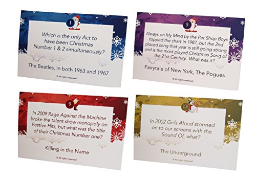 Playing games at Christmas is all part of the fun but researching and creating games takes ages - I am an official game specialist, let me do the hard work for you and have them delivered to your door for free! The "Film & Music Bundle Pocket Game Bundle" is a great value package that will unite the whole family even further over the festive period. The bundle contains my three best selling film and music related Pocket Games:Christmas Movie Trivia: This game gives you some information about a famous film which is either Christmas themed or released for Christmas. Just try to guess the name of the movie from the clue! Great fun Christmas themed game which everyone can join in with.Christmas Number Ones: these unite all ages as even the old ones are well known today! This game gives you interesting trivia, song lyrics and other clues to try and guess the song or artist who topped the festive chart. Great fun Christmas themed game which everyone can join in with.Christmas Film Quotes: This game gives you lines or quotes from famous films which are either Christmas themed or released for Christmas. Just try to guess the name of the movie from the quote! Great fun Christmas themed game which everyone can join in with. Each game is credit card sized (8.5cm x 5.5cm) to easily fit in a cracker, stocking, advent calendar or anywhere else. Perfectly portable so great for a Christmas Party, night out or any festive gathering. All games come practically packaged in a resealable cellophane bag. You are supporting a small UK business by purchasing this item. Printed on 180gsm cardstock which is fairly thin and slightly pliable. You don't need to wait in for the postman, I will package your order to fit through your letterbox and postage is always free. I also guarantee delivery in time for Christmas Day. If you need these for an earlier party or gathering just get in touch and I'll do everything I can to help.