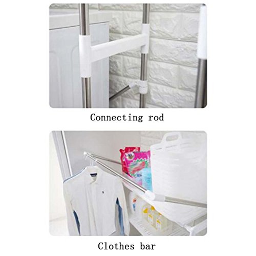 material: plasticweight:4kgInstallation: PlacementSpecifications: Washing machine rack, 2 dirty clothes basketSize: A 38.5 * 29.5 * 88.5CM B (69 ~ 97) * 30 * 154CMStorage scene: kitchen storage, bathroom storage, bedroom storage