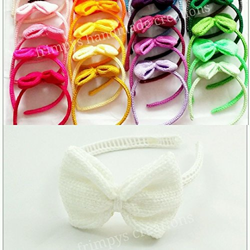 These bow Alice bands are made with the highest quality acrylic yarn and plastic hairbands. The Alice bands are soft and flexible, they fit up to adult size head. These bows have slightly brighter and fuller colours than the pictures(due to different monitor qualities). Please contact us first if you are unsure of the colour. Buy now to get the perfect finishing accessory! Multiple colours are recommended for everyday's different outfits.