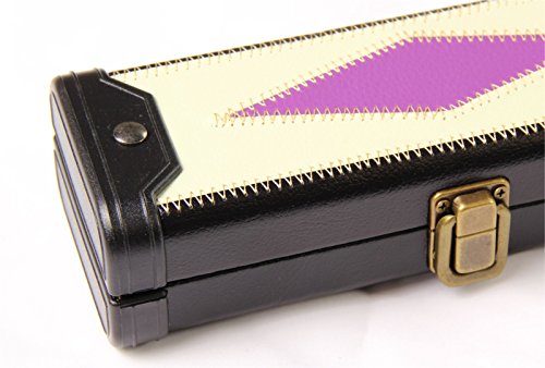 Case has a hard construction, which is made from a quality leatherette material to give a more stylish look; Flexible soft carrying handle; Soft Black suede style internal padding to hold the cue tight and secure