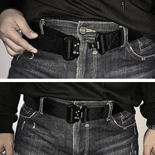 The belt is designed to be worn with most casual or tactical pants. Whether you carry everyday, or just want a solid belt that will withstand abuse without sacrificing comfort, the Feikcore tactical belt is a perfect choice. Quick release, heavy duty buckle built to last, comfortable and secure. The quick release functionality is intuitive and smooth when you push the two silver tabs down at the same time. If just one tab is engaged, the connection will still hold and fully re-lock on its own. Eco-friendly nylon material: Our belts are made from high quality, 1.5" nylon webbing. Adjustable sizing: allowing for movement of your waistline or for the extra space you need for your daily carry. Buckle note: While we find the belt to work well with some belt loops, most belt loops can be too small to fit the buckle through. In this case, each time you want to take the belt on/off a pair of pants, please remove the male end of the buckle, loop the nylon through the belt loops, then re-install the male buckle. Colors available: Black, Brown, Green. Warranty: 2-year no questions asked warranty and 30-day money back guarantee. Note: The web belt is not made for repelling and climbing applications.