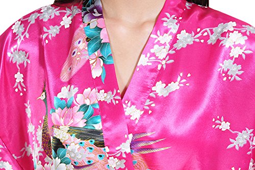 • Gorgeous Vivid Kimono Dressing Gown with Beautiful Oriental Peacock and Blossoms Sublimation Print Pattern; • The Luxury Silky Robe Fabric Feels Very Soft, Smoothness and Breathable on the Skin, Putting It on Makes You Feel Relaxed, Comfy and Sexy; • Perfect for Loungewear, Sleepwear, Bath, Spa, Beach, Prom, Hen Night, Party Evening Gown and Wedding Bridesmaids Dressing etc. • Please Choose 1-2 SIZES Bigger than ASIAN Label Size Carefully; Attention: 1. Normally, EU/European size is 1-2 SIZES bigger than ASIAN size; 2. Please allow 1 - 2 cm tolerance due to manual measurement; 3. Color: The color of the actual item may vary slightly from the images you see on your computers screen, thanks for your understanding! EUR/Asian Size Chart: Please check follow SIZE CHART carefully to make sure your measurement before you place order! EUR S (Asian Label M): • Bust:44.9 inch/114 cm; Fit Bust:33.5- 35.4 inch/85-90 cm; Shoulder:22.4 inch/57 cm; Length:34.3 inch/87 cm EUR M (Asian Label L): • Bust:46.5 inch/118 cm; Fit Bust:35.4- 38.6 inch/90-98 cm; Shoulder:23.2 inch/59 cm; Length:34.6 inch/88 cm EUR L (Asian Label XL) • Bust:48.8 inch/124 cm; Fit Bust:38.6- 40.6 inch/98-103 cm; Shoulder:24.4 inch/62 cm; Length:35 inch/89 cm EUR XL (Asian Label XXL) • Bust:52.8 inch/134 cm; Fit Bust:40.6- 44.5 inch/103-113 cm; Shoulder:26.4 inch/67 cm; Length:35.4 inch/90 cm Washing Instructions: Hand Wash Cold; Wash Separately; Don't Bleach; Tumble Dry Low; Product Included: 1 * Dressing Gown in a PP bag