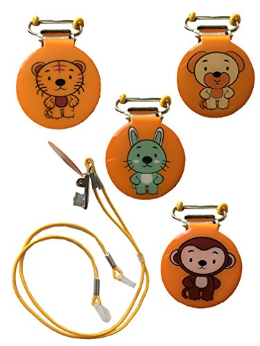 This child's behind the ear hearing aid safety retainer comes in 4 different designs, it has two ends (one for each ear) with a rubber loop which attaches around the aid. The round metal clip lifts to open the crocodile clip underneath, it closes shut onto your child's clothing at the back of the neck keeping the hearing aid attached to the cord in the event that the hearing aid falls off.