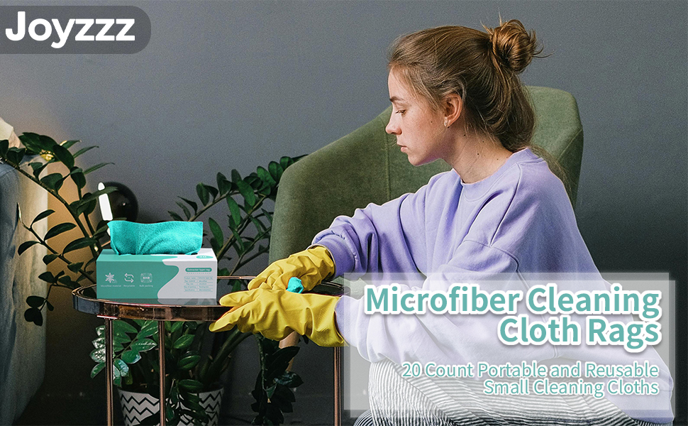 Joyzzz Microfiber Cleaning Cloth Rags come in a 20-count portable dispenser box, crafted from premium microfiber for ultra-soft, lint-free, and streak-free cleaning. Lightweight and compact, these reusable cloths excel in absorbing spills and tackling diverse cleaning tasks across home, car, and beyond, making them an essential, eco-friendly cleaning companion.