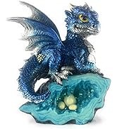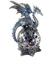 Ain't it Nice Dragon Statue with Medieval Dragon Sword and Crystal Ball Collectible Dragon Figurine Fantasy Medieval Dragon Décor, Blue 4(L) 2(W) 7(H) inches