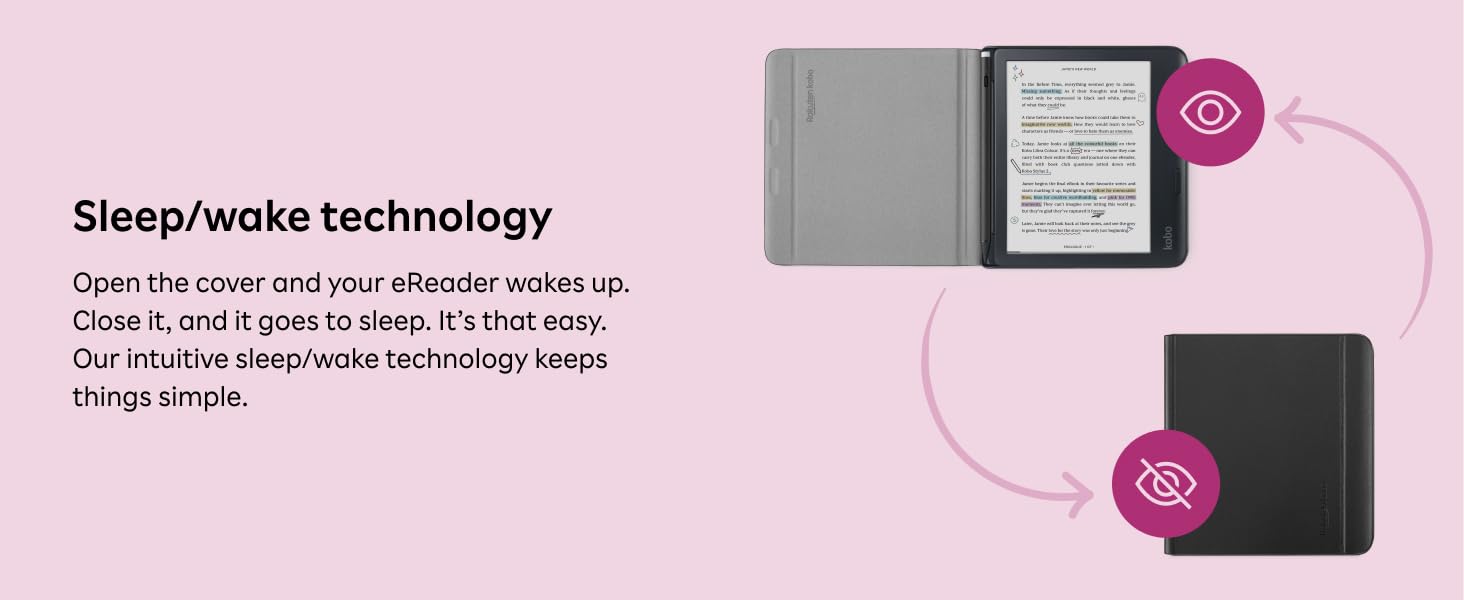The KoboLibra Colour SleepCover Case in Black Notebook combines eco-friendly vegan leather with smart Sleep/Wake technology to extend your Kobo Libra Colour eReader’s battery life. Featuring a built-in 2-way stand and magnetic stylus holder, it offers hands-free versatility and convenient stylus storage, all tailored perfectly for the 7” Kobo Libra Colour. Protect your device while making a statement in sustainable sophistication.