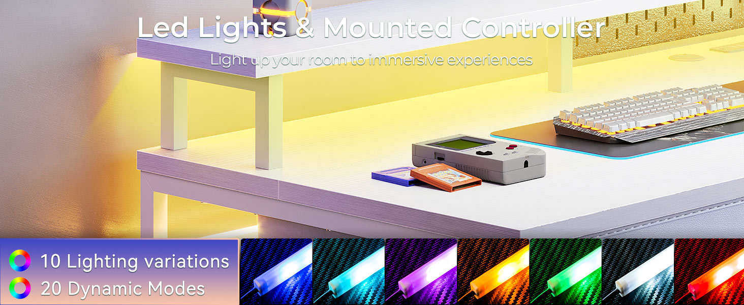 The AODK Electric Standing Desk is a modern 47-inch adjustable workstation designed for home and office use. Featuring a quiet, durable motor with 3 height presets, built-in power outlets and USB ports, 20 LED lighting modes, and a full-sized monitor shelf, it combines ergonomic comfort with smart storage via three easy-assemble cloth drawers and hidden cable management for a clean, efficient workspace.