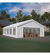 The DetalleGo 20’ x 32’ Outdoor Heavy-Duty Party Tent combines expansive 640 sq ft coverage with a robust 1.5-inch galvanized steel frame and waterproof, UV-protected 170g PE fabric. Designed for up to 85 guests, it features a unique triangle support structure and multiple sidewalls for ventilation, making it ideal for weddings, parties, and outdoor events. Comes with 3 storage bags and a comprehensive warranty for lasting reliability.