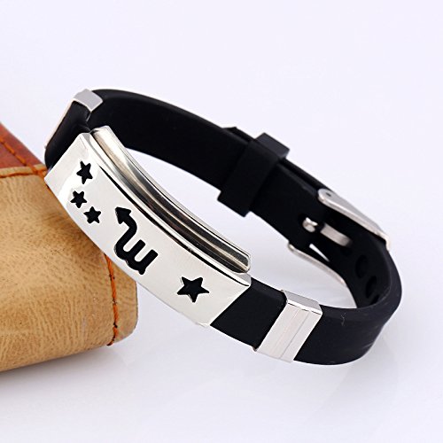 Novaluna Retro Silver Zodiac Star Sign Black Silicone Bracelet Belt | Desertcart Philippines