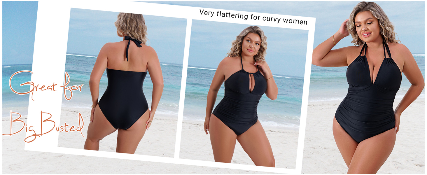 Women's Slimming One Piece Swimsuits Tummy Control Bathing Suit Halter Swimwear for Big Busted Curvy Woman