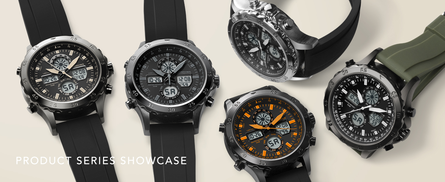 PINDOWS Watch for Men Big Dial Analog Digital Black Silicone Sport Multifunction Luminous LED Dial Waterproof Watches Fashion Wristwatches