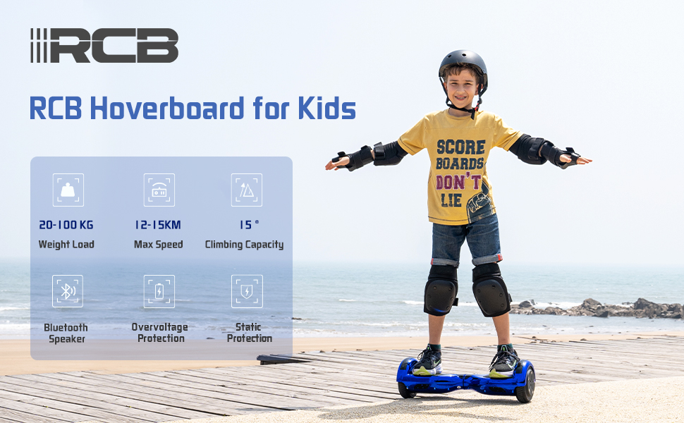RCB Premium Hoverboard 6.5 inch, hoverboards with Bluetooth, speaker, colored LED lights, gift for children and teenagers