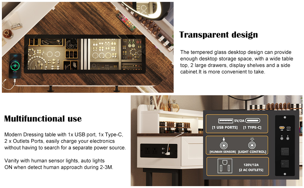 Corner Vanity Desk With Mirror And Lights Equipped With Charging | Desertcart Philippines