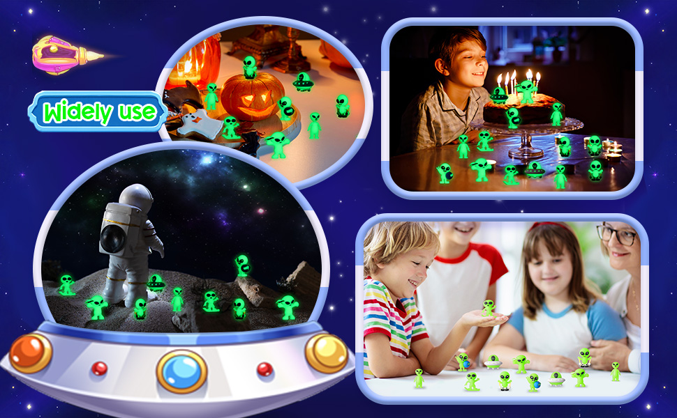 These are really small but oh so adorable! One of my grandsons wants an alien themed birthday and these are perfect for gift bags. I love that they glow in the dark. There are so many of them that in addition to the party bags, I’ll have plenty left over that I can use to scatter on the tables. Because they are so small of course do not recommend for really young children, but these are perfect for our seven-year-old. A great deal for the price. You won’t be disappointed.
