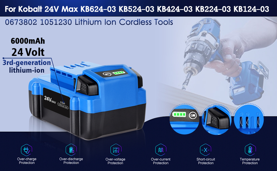 TenHutt6.0Ah Replacement Battery for Kobalt 24V MAX Battery KB624-03 KB524-03 KB424-03 KB224-03 KB124-03 0673802 Lithium-Ion Cordless Tools [Can't FIT Snow Joe &Sun Joe & Chain Saw]