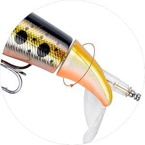 It's hard to get these to start plopping when you start reeling them in. They just want to move along like a powerboat struggling to get up on plane. Hooks are very sharp, on the plus side.Update: I rigged one on straight braid today and figured out how to get it to reliably plop. I caught 5 bass, with a couple around 3 lbs, and one about 6 lbs. I also caught 3 big chain pickerel, one of them around 6 lbs.After fishing today, I spray painted one white and one black. I want to see if the popular colors of the real thing work better. Will see tomorrow.