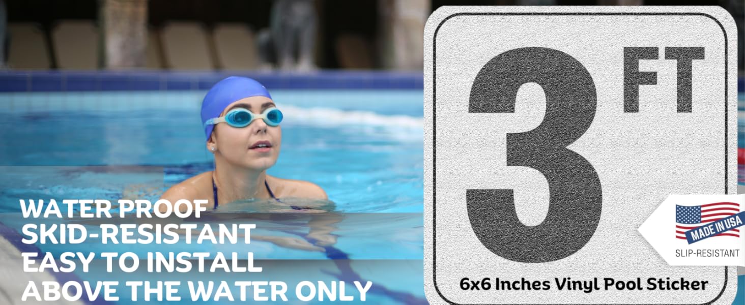 The Aquatic Custom Tile is a set of high-quality, adhesive vinyl pool depth markers designed for easy installation and compliance with safety regulations. Measuring 6x6 inches and made in the USA from durable 3M materials, these skid-resistant markers enhance both safety and aesthetics in any swimming pool environment.